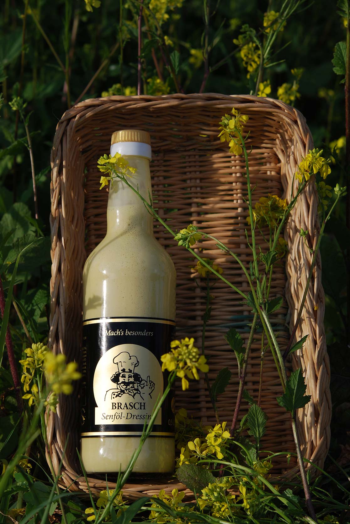 Unser Brasch Senföl Dressing wird ausschließlich mit den hochwertigsten Zutaten in reiner Handarbeit hergestellt. Als Hauptzutat enthält unser Senföl Dressing 50% kaltgepresstes, natives und würziges Senföl sowie ausgesuchte Gewürze, wie beispielsweise Liebstöckelwurzel und Curcuma. Das enthaltene Curcuma verleiht unserem Senföl Dressing eine cremige und appetitliche leicht gelbe Farbnote.